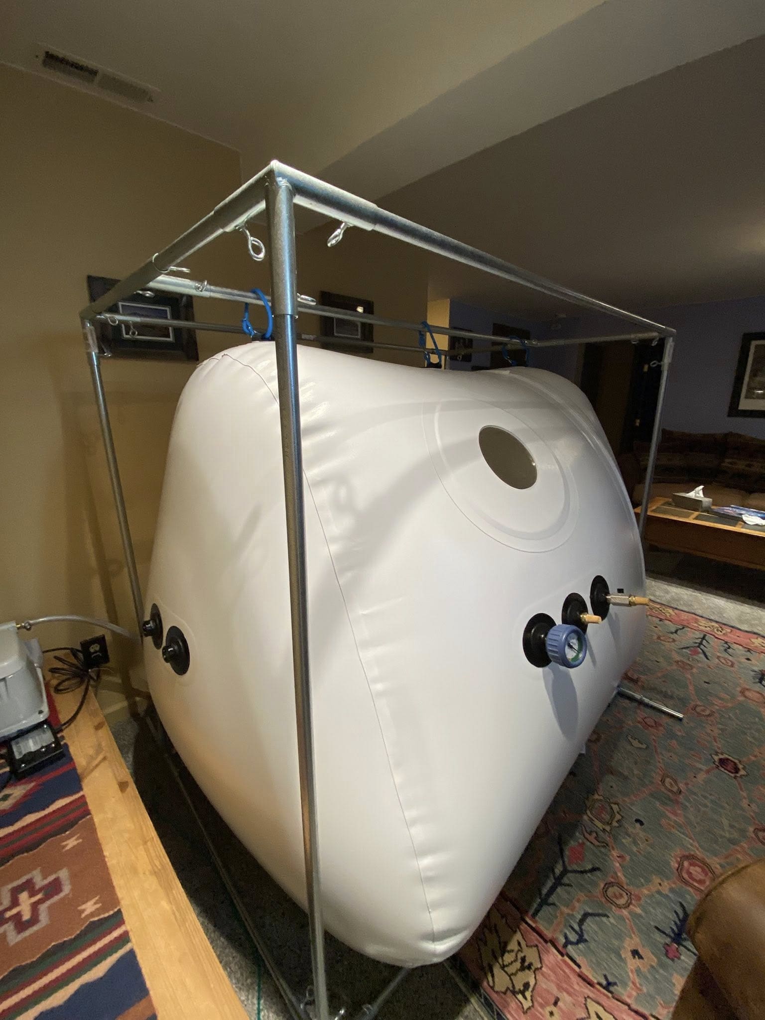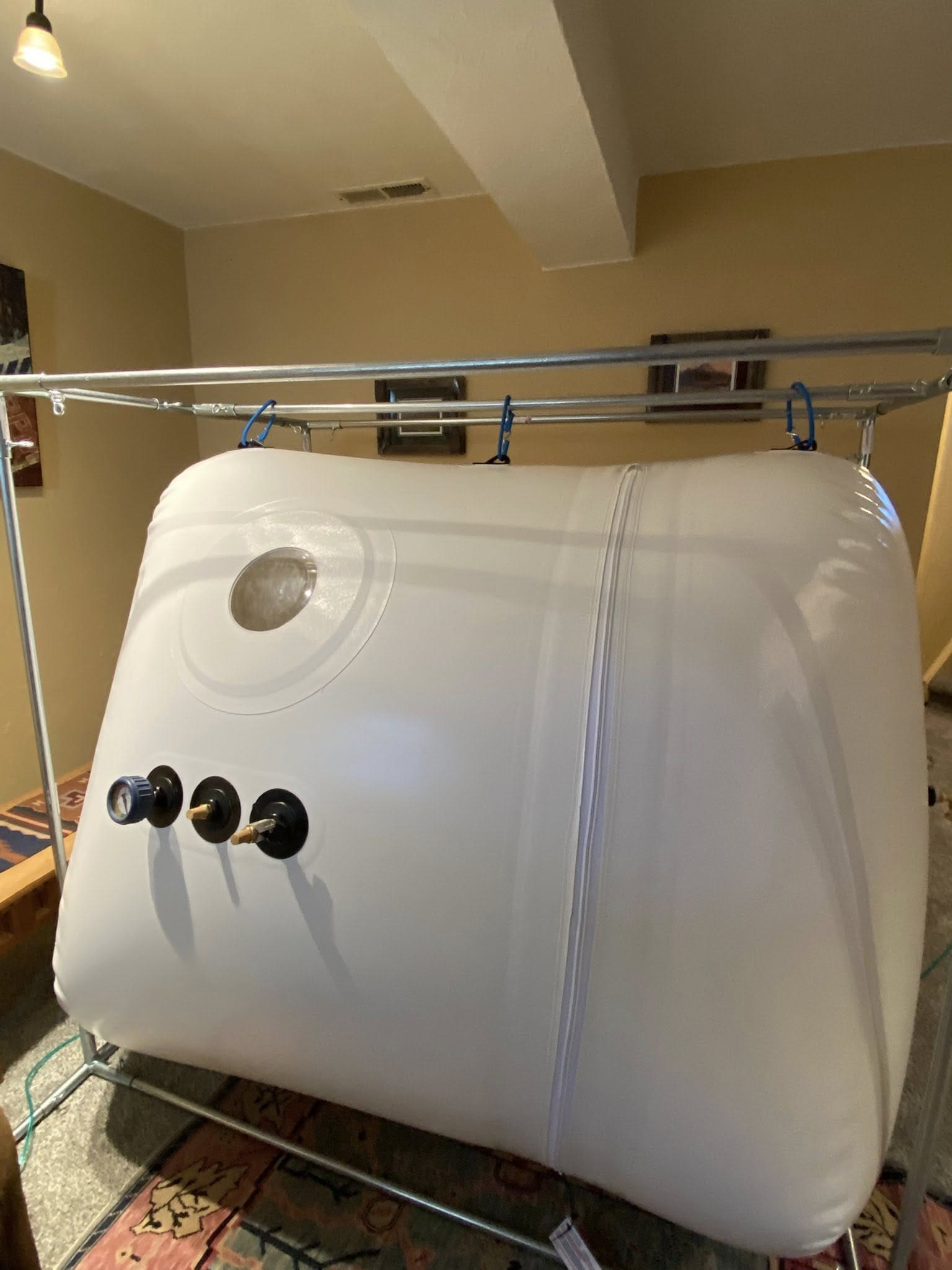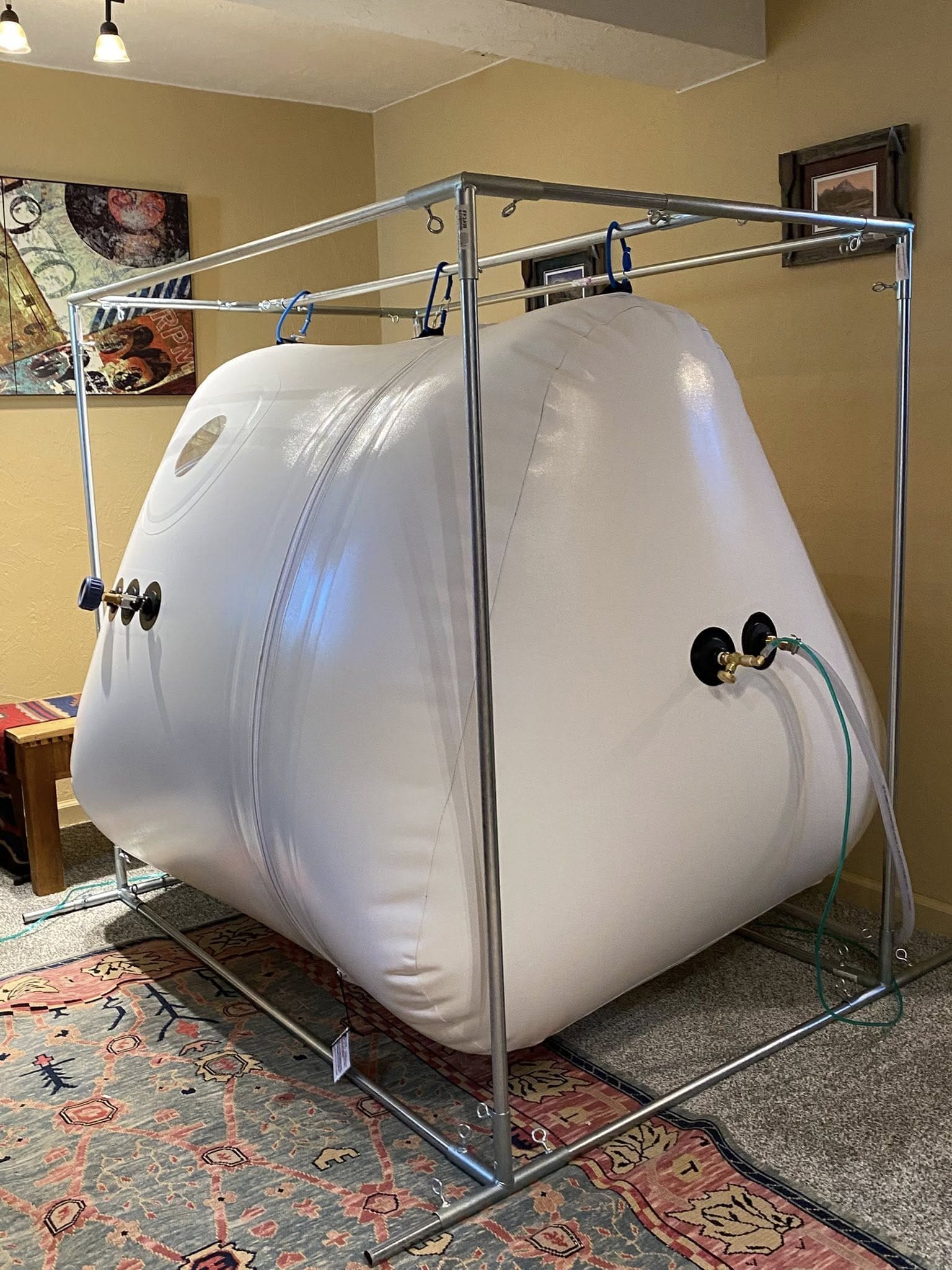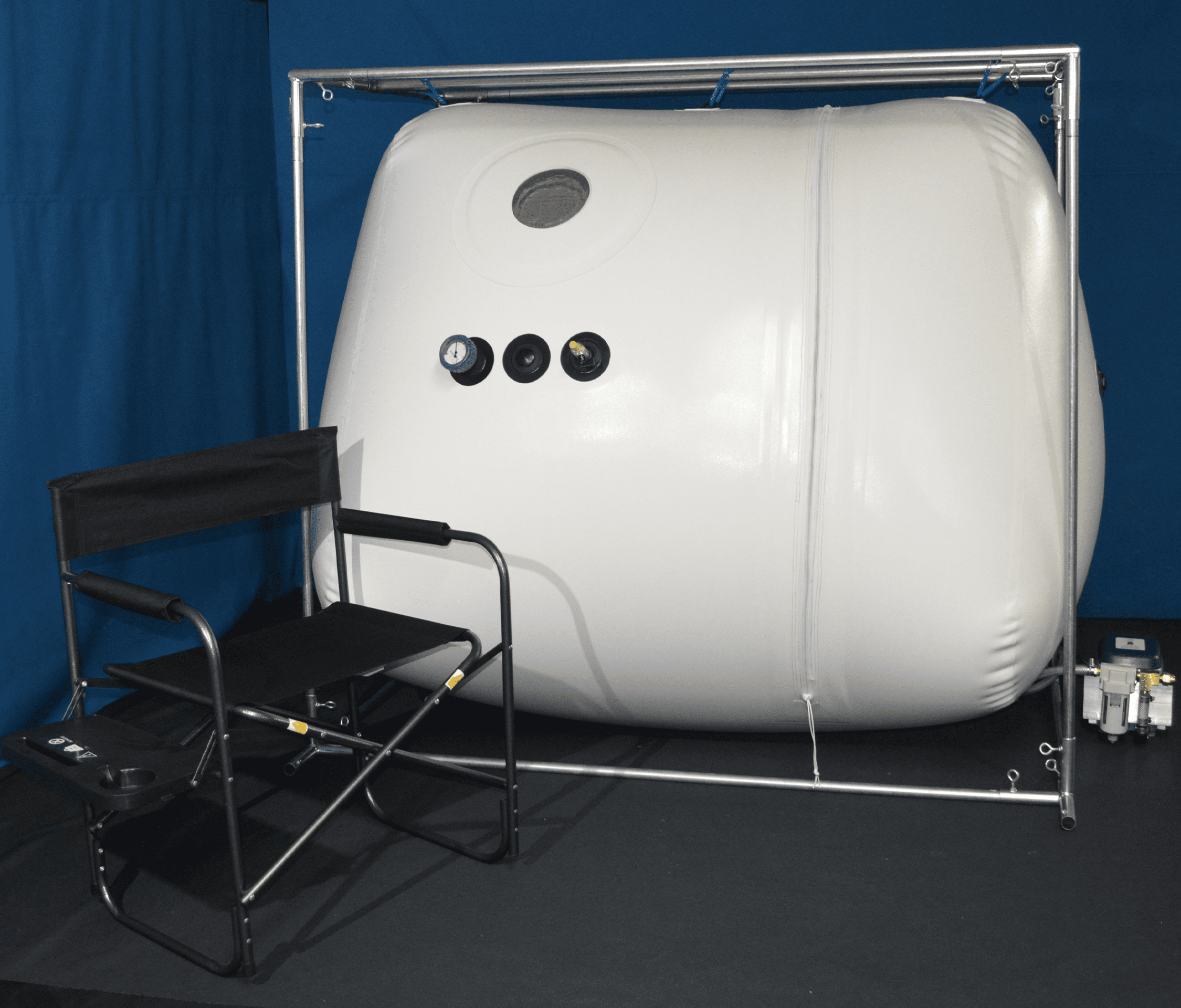 Made entirely in the USA, this chamber is FDA-cleared and crafted with the same quality and safety standards Newtowne has maintained for over 20 years. Its vertical configuration includes a reinforced external steel frame, keeping the internal area free of obstructions while providing stable support for entry and exit. A triple-zipper system with dual airtight safety zippers ensures secure pressurization without the need for lubrication.