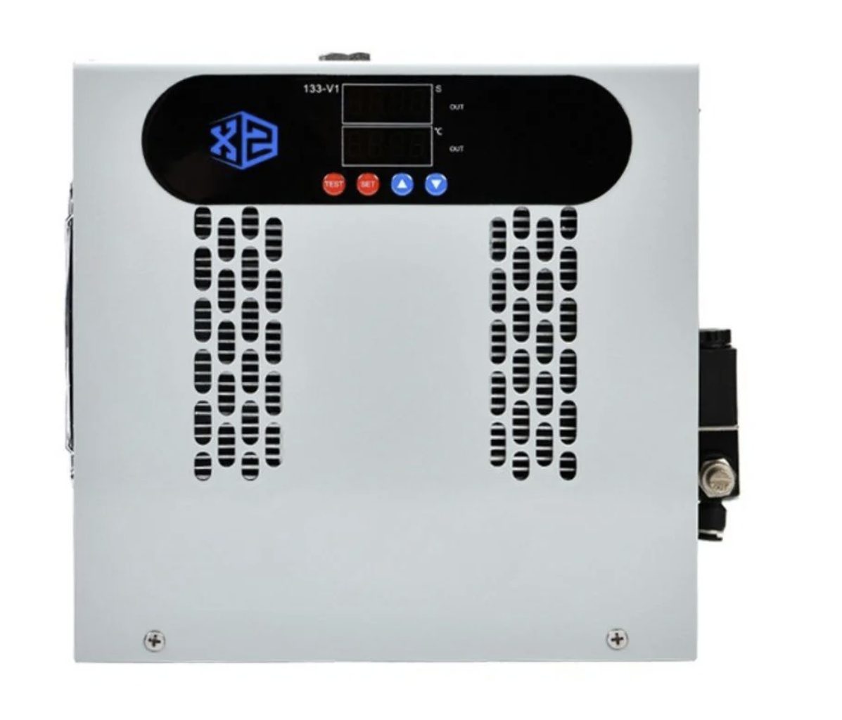 *This product is an electronic refrigeration air condenser. It is used to cool and dry hot and humid air and reduce the water content. It uses freeze drying and is mainly used to dry and purify the air source at the terminal to achieve the purpose of gas-liquid separation.  It can reduce the dew point and reduce humidity. This product adopts precise temperature control. The temperature is pre-set to keep the chamber temperature constant and comfortable, The cooler is custom fit for your Hyperbaric Chamber. Drainage device cycle timing work control time 0-9999 seconds.