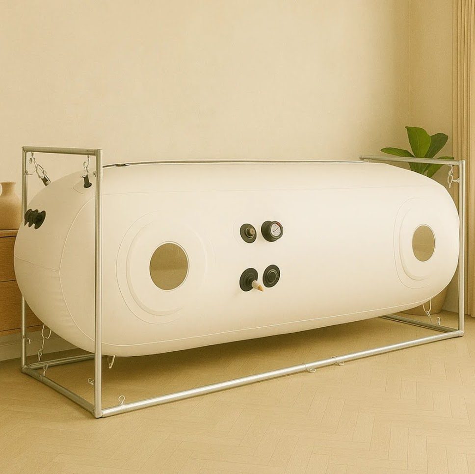 This ultra-spacious 40″ chamber fits two adults with room to sit, stretch, or even exercise—and it’s made in the USA for safe, comfortable, and effective mHBOT sessions at home.