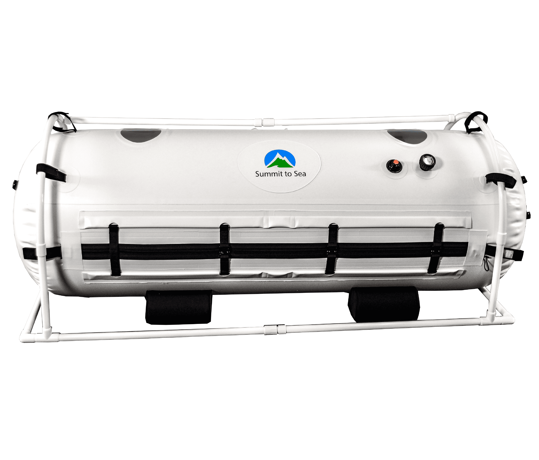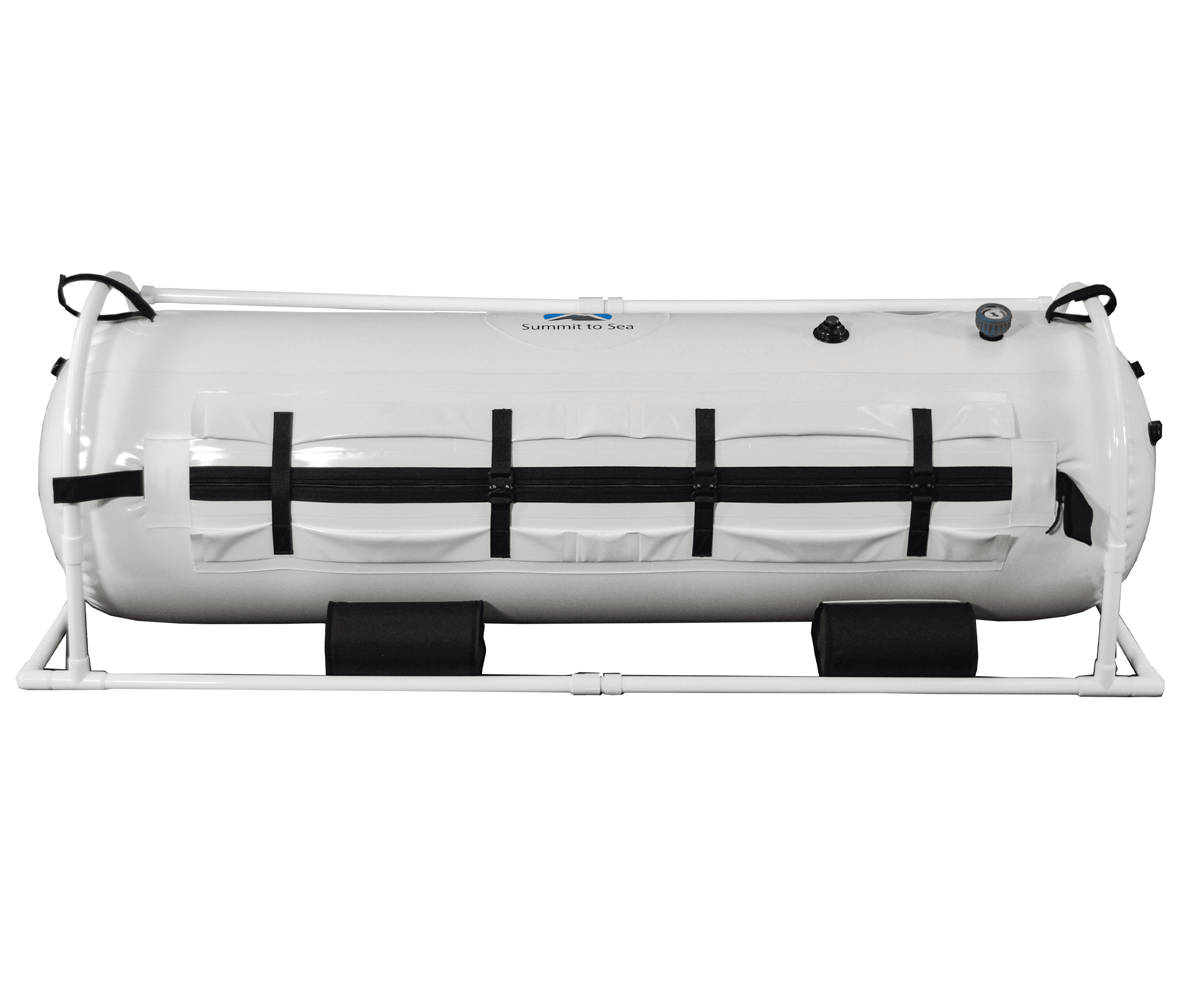The Summit to Sea 26″ Shallow Dive Hyperbaric Chamber is a compact and cost-effective solution for those looking to experience the benefits of hyperbaric oxygen therapy with a smaller chamber. With an internal diameter of 26 inches and a length of 103 inches (or 8.5 feet), it comfortably fits one adult and can accommodate most children sitting up—or even standing if under 26″ tall.