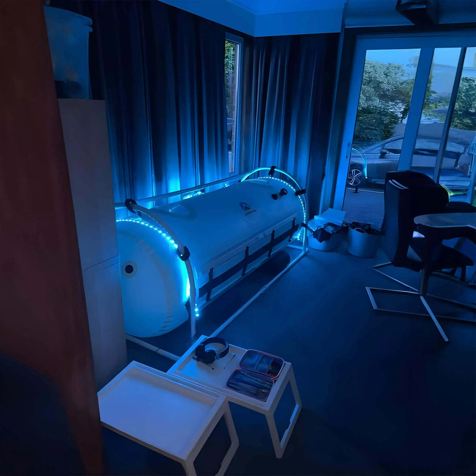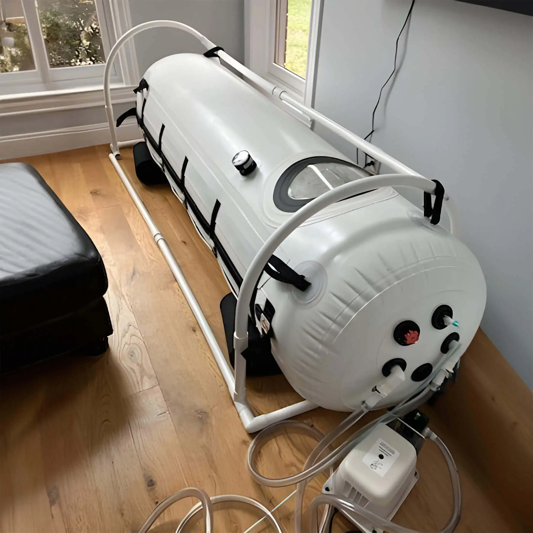 This compact, FDA-approved hyperbaric chamber is designed for single users, with upgraded safety features, dual gauges, and a contoured mattress making it perfect for home or office use.